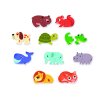 Edukačné puzzle pre batoľatá. Dieťa poskladá rôzne dvojdielne zvieratká. Diely sú siluetové.